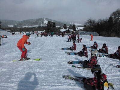 第1学年スキー教室の1日目です。宿に11:10ころ予定より早く皆無事に到着。その後、室長が貴重品の対応、環境係が部屋の状況をチェック、保健係は健康観察とよく仕事に勤しんでいました。そして昼食です。メニューは「焼うどん・お吸い物・中学芋」で大変美味でした。昼食後はいよいよスキー講習です。天候が心配でしたが、講習が始まる頃は何と晴天!短時間ではありましたが、リフトに乗るほどの上達が見られた班もありました。