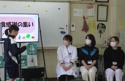 いつもおいしい給食を作ってくださっている栄養教諭さんや調理員さんに感謝の気持ちを送る「給食感謝の集い」を行いました。インフルエンザ流行真っただ中で、体育館でやる予定を変更して、急所、オンラインにしていただきました。