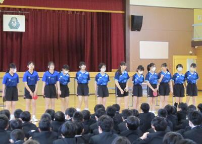 令和8年4月10日(金)新入生歓迎会 盛大に行われる🌸 投稿: 管理者 (21:11) 入学から3日目。少しずつ中学校生活にも慣れてきたところで、2,3年生が企画して、準備を進めてきた新入生歓迎会が開催されました。 生活のきまりのこと 委員会のこと 生徒会のこと そして各部のパフォーマンス付き紹介 に会場は大盛り上がりでした。どんな中学校生活にするかを自分でデザインして、充実した毎日と大きく成長できる3年間を作り出そう。 Tweet -