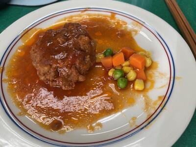 さて、先日は校舎中に甘い果実の香りが漂わせ、ブルーベリージャムが出来上がっていましたが、今日は「はんばーーーーーーーーぐっ!」煮込んでおいしく出来上がったものをいただきました。しっかり火は通っているけれど、ジューシーさもしっかり残ったおいしいハンバーグでした。ごちそうさまでした。ぜひおうちでも試してみてください。