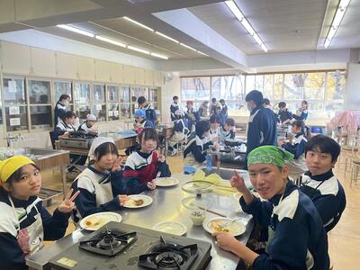 2年生は「食物」分野の学習をしています。食品やその栄養価の知識などを学ぶことと並行して、みんな大好き・・・調理実習も実施しています。そういえば・・・コロナ禍はこういった実習もできなかったなぁと思うと、アフターコロナでこういった体験活動が復活してよかったとつくづく思いました。